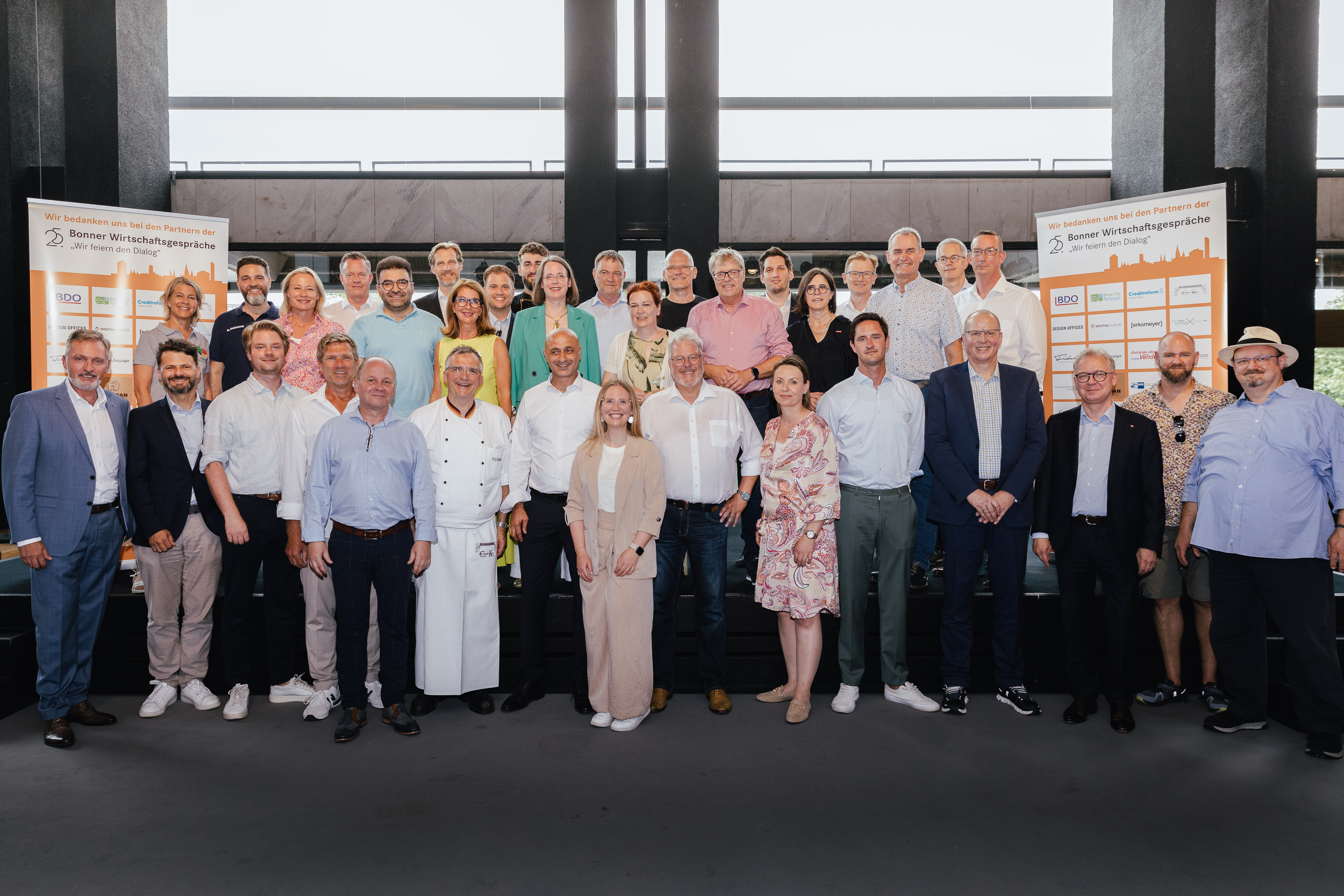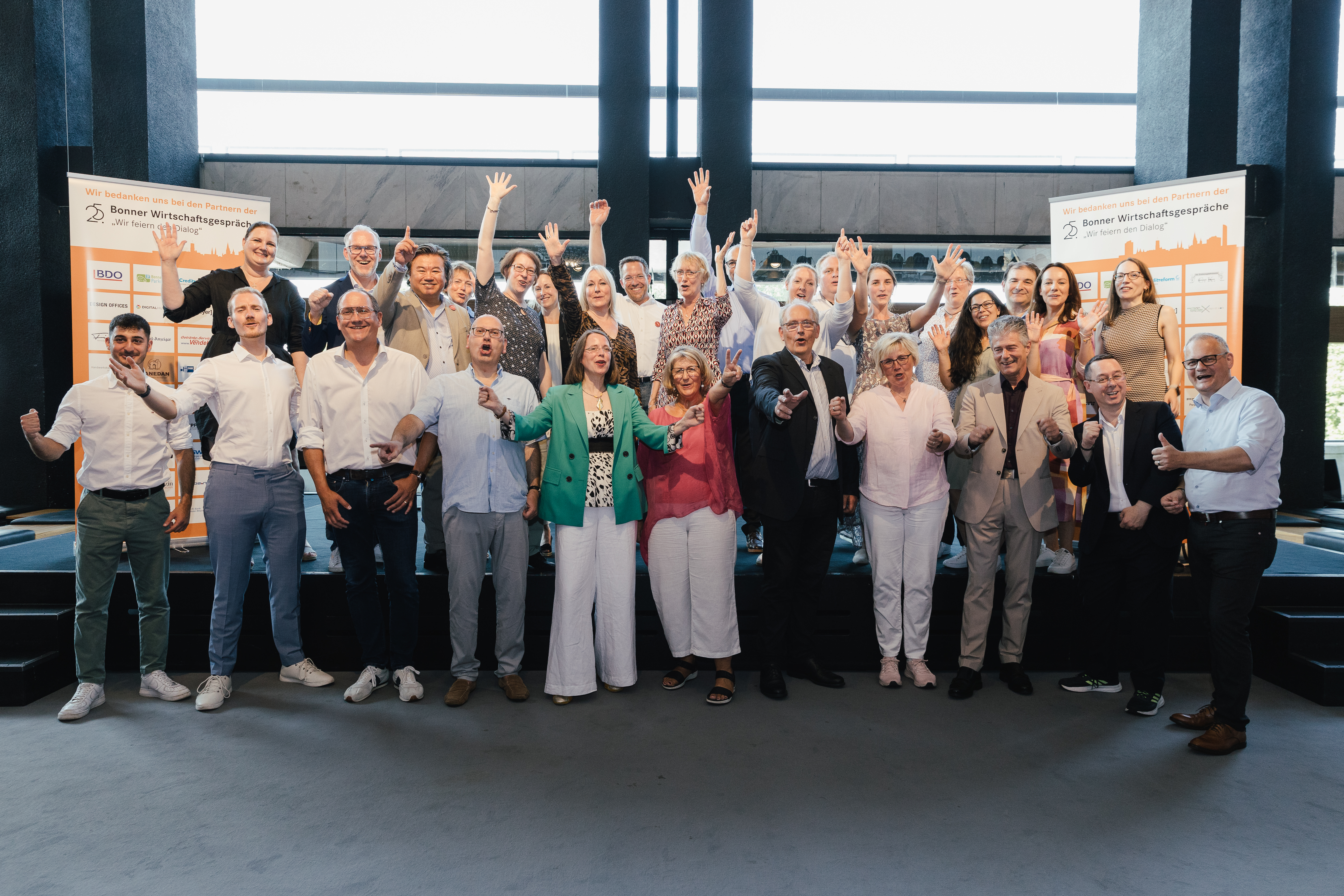 Seit bisher 24 Veranstaltungen sind die Bonner Wirtschaftsgespräche das Format, bei dem unsere Gäste aus den Unternehmen, Wissenschaftseinrichtungen, Institutionen, der Kultur und Politik die Gelegenheit haben, mit den sich präsentierenden Partnerinnen und Partnern der Bonner Wirtschaftsgespräche und natürlich auch allen Gästen ins Gespräch zu kommen und neue, nachhaltige Ideen zu schmieden. Mit der fünfundzwanzigsten Auflage sind die Bonner Wirtschaftsgespräche das ideale, etablierte Format zum gewinnbringenden Austausch zur Zukunft des Wirtschaftsstandortes Bonn.
