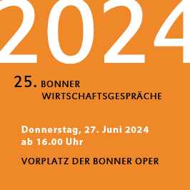 wir laden Sie sehr herzlich zu den 25. Bonner Wirtschaftsgesprächen am Donnerstag, 27. Juni 2024, ab 16.00 Uhr auf den Vorplatz der Bonner Oper ein.